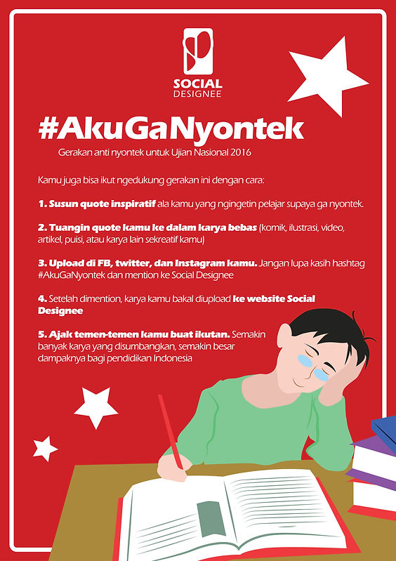 3. Upload di FB, twitter, dan Instagram kamu. Jangan lupa kasih hashtag #AkuGaNyontek dan mention ke Social Designee